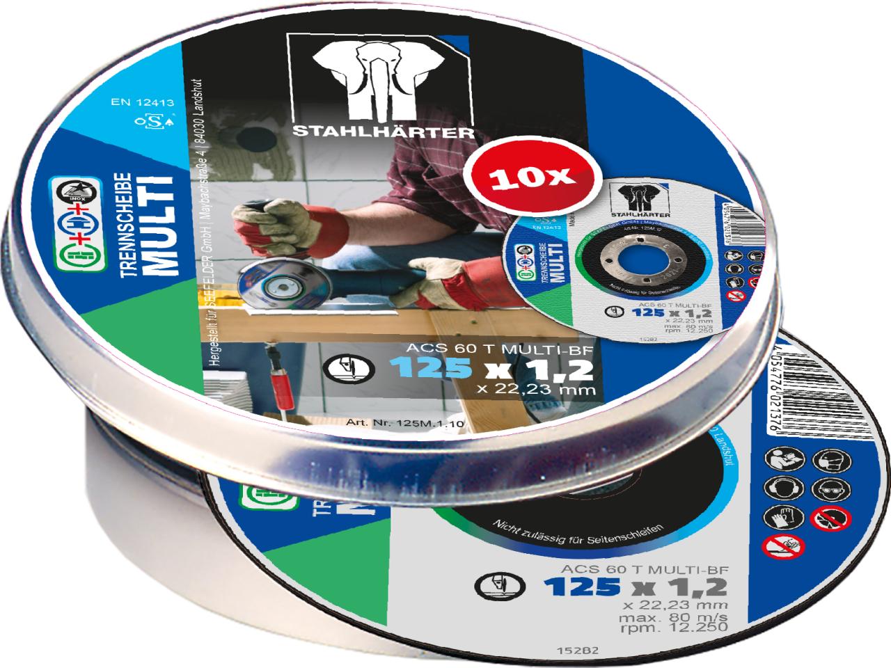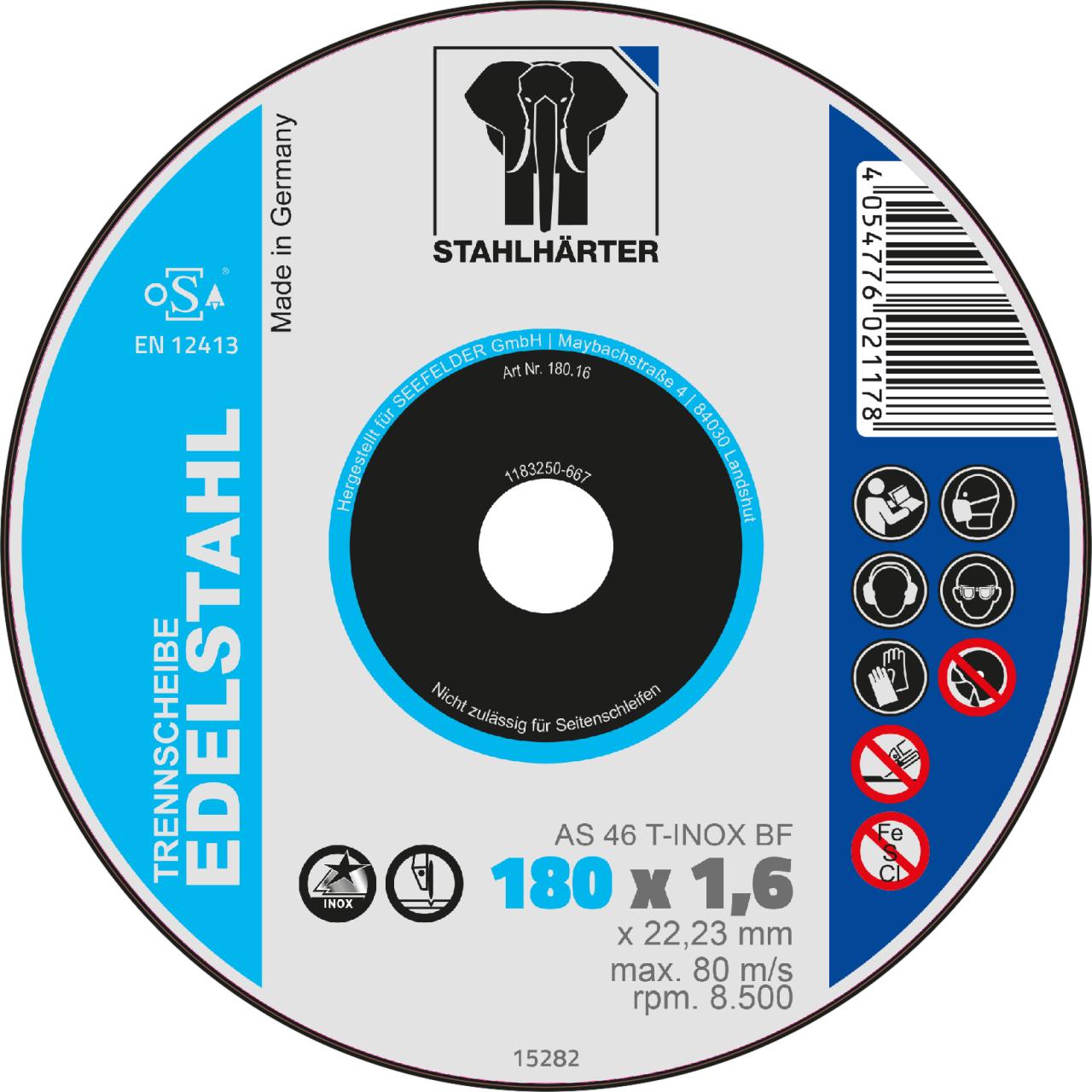 Řezný kotouč STAHLHÄRTER je vhodný pro normální a nerezovou ocel. Zvláště vhodné jsou také plechy a tenkostěnné profily. Řezný kotouč je ideální pro konstrukci nádrží a kontejnerů. Výhodou je energeticky úsporný účinek tenkého (1,6 mm) speciálního řezného kotouče. Tím jsou chráněni lidé i nástroje.