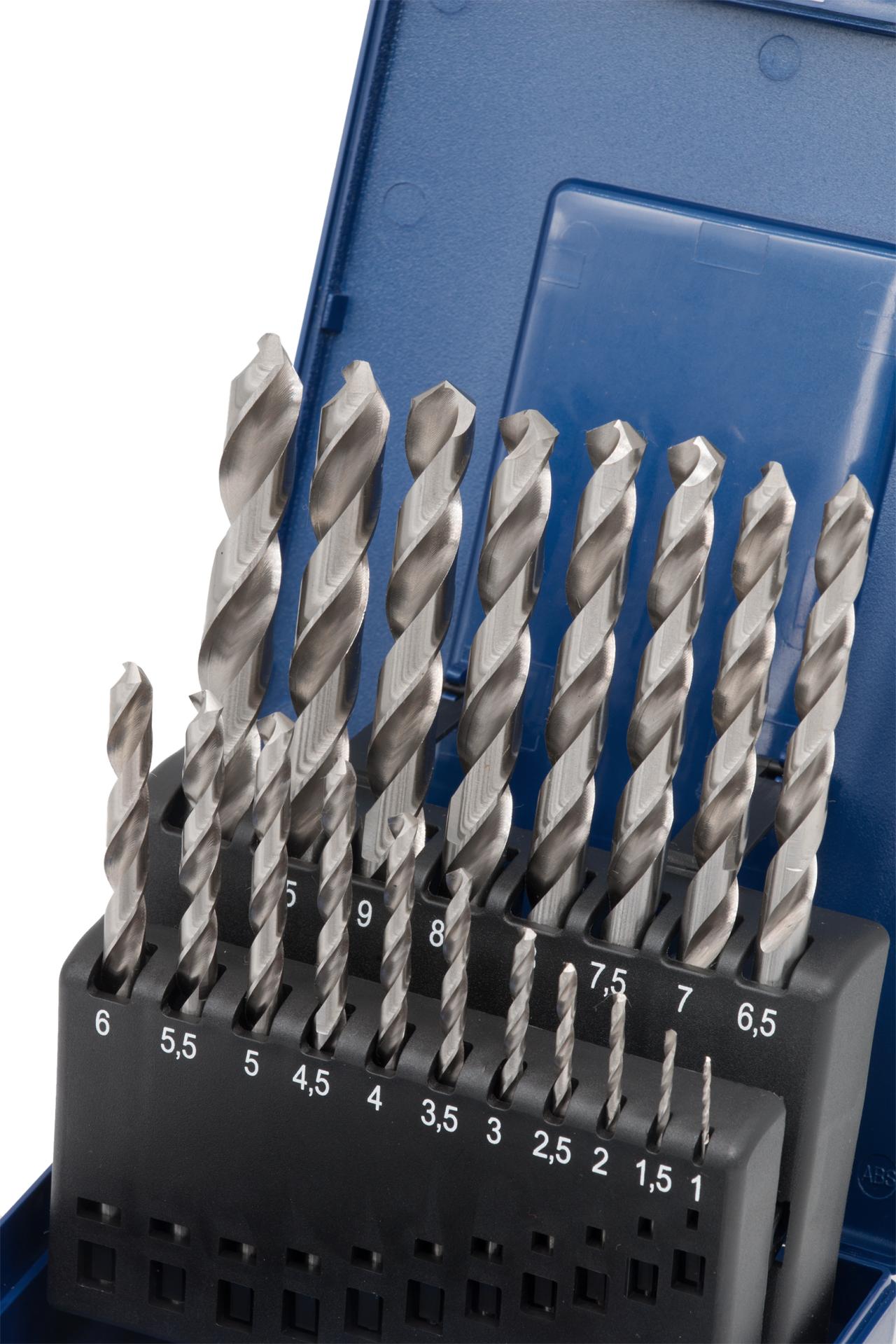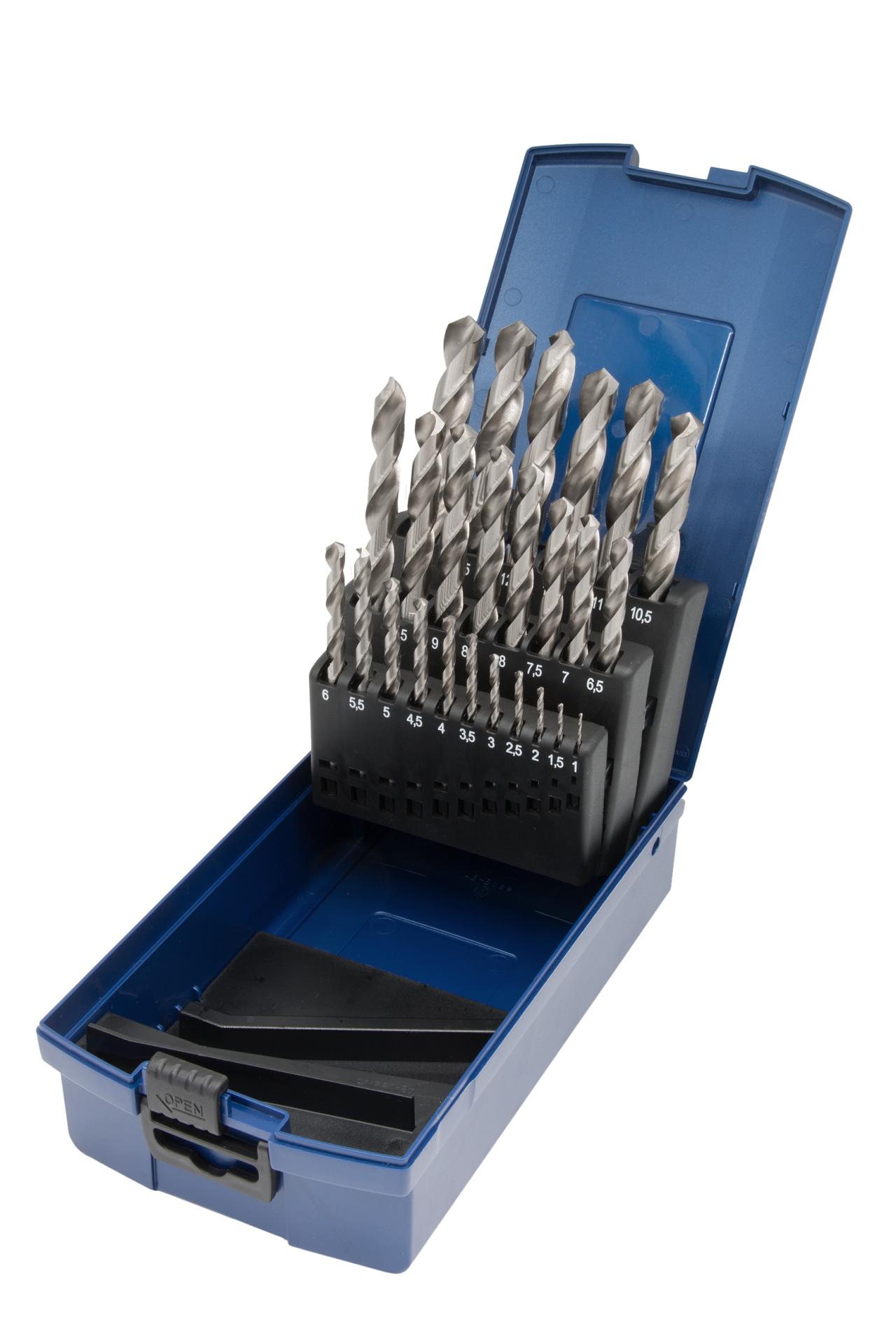 Sada spirálových vrtáků v kazetě DIN 338 HSS-E broušených 25 dílů