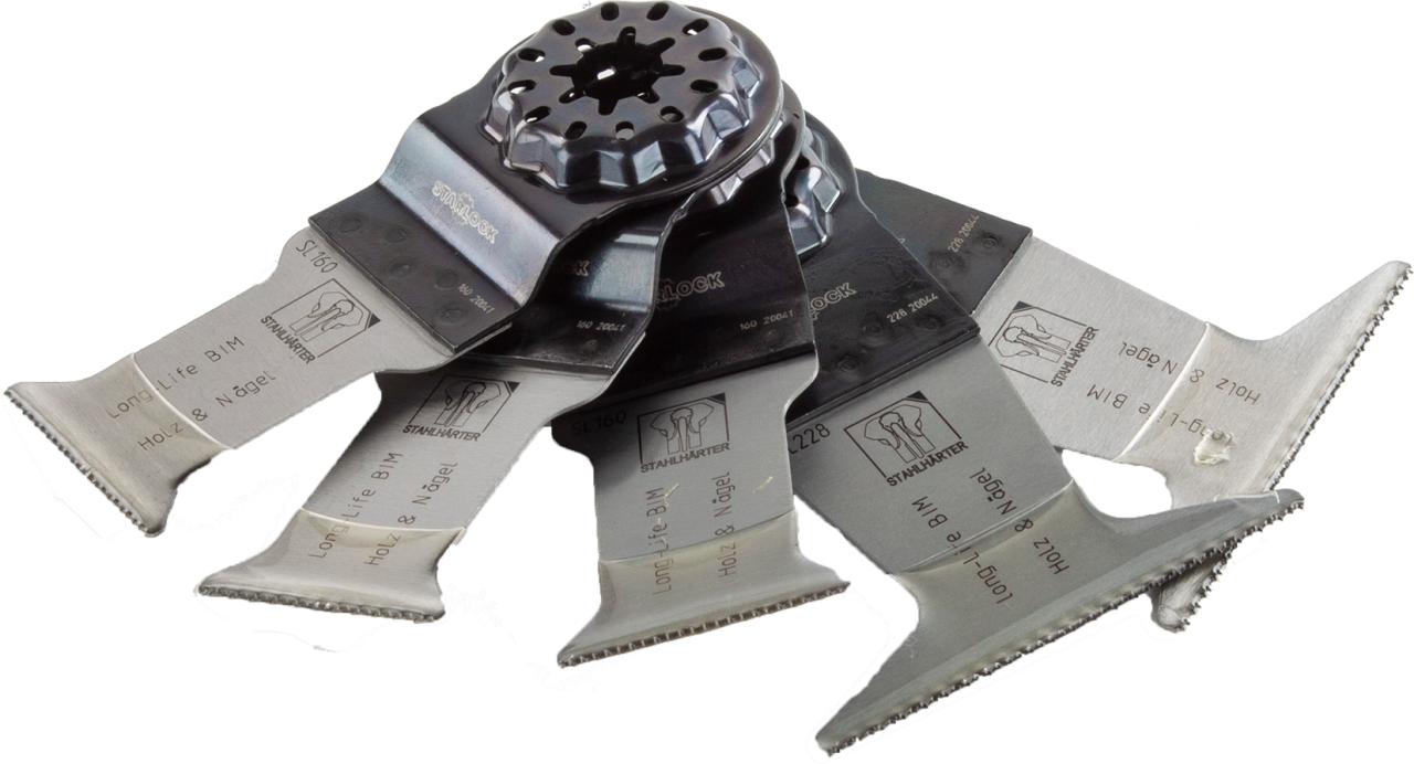 Desetidílná sada pilových listů Starlock je dokonalým vybavením pro každé multifunkční nářadí. Univerzální pilové listy, extra robustní pilové listy s dlouhou životností a pilový list pro jemné řezy v osvědčené kvalitě STAHLHÄRTER umožňují široké spektrum použití.
