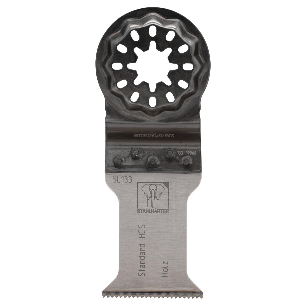 Zakřivený standardní pilový kotouč STAHLHÄRTER E-Cut s uchycením Starlock je vyroben z oceli s vysokým obsahem uhlíku (HCS). Široký tvar umožňuje maximální řezný výkon a dlouhé, rovné řezy do dřeva, sádrokartonu a plastů.
