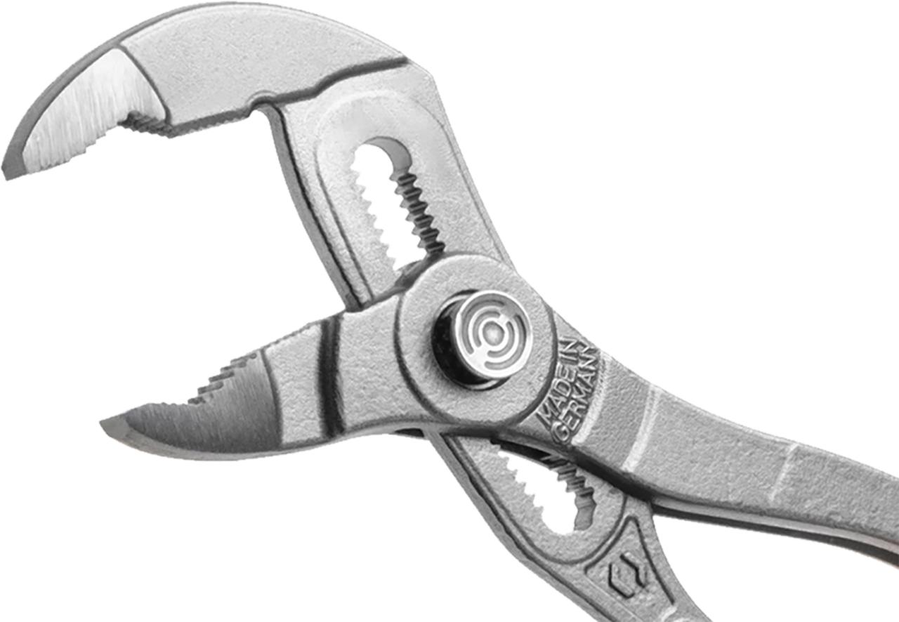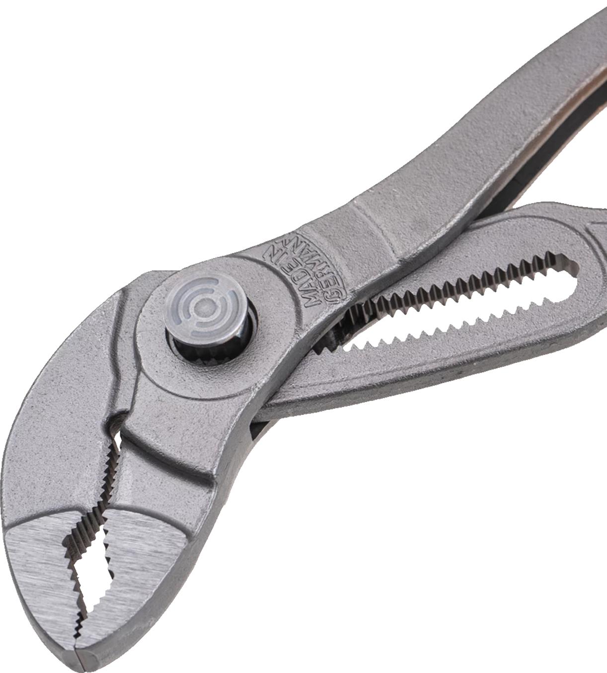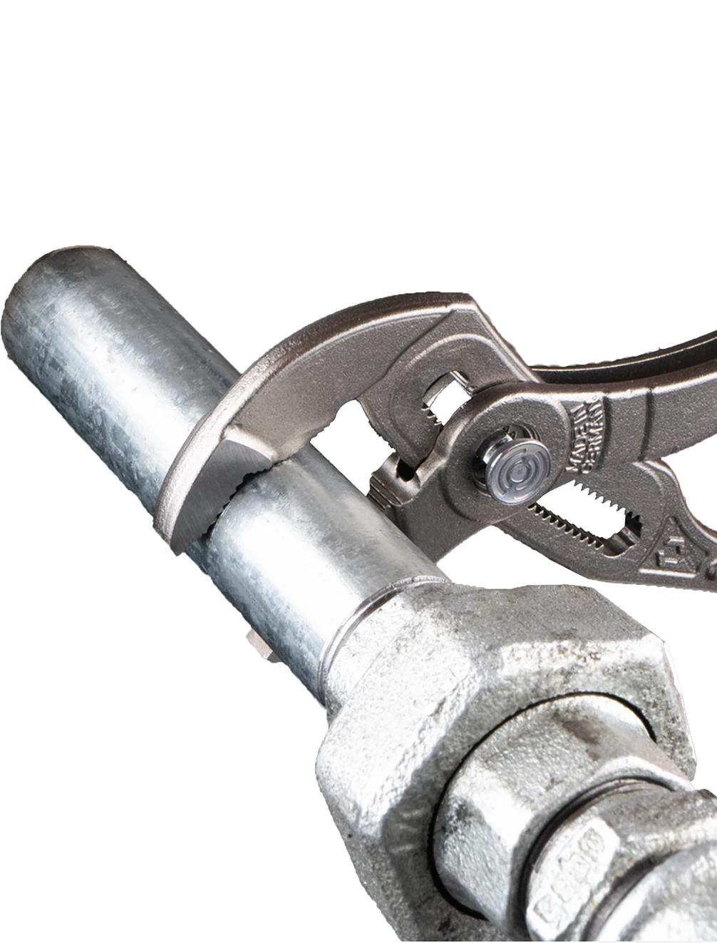 Dlouhodobá spolehlivost díky skříňovému kloubu a kaleným zubům (až 61 HRC). Samočinné upínání na trubky a matice pro bezpečnou práci bez námahy. Robustní tvar z odolné chromvanadiové oceli. Odolný vůči nečistotám, zejména ve venkovním prostředí. Leštěná hlava, rukojeti s povrchovou úpravou máčením.