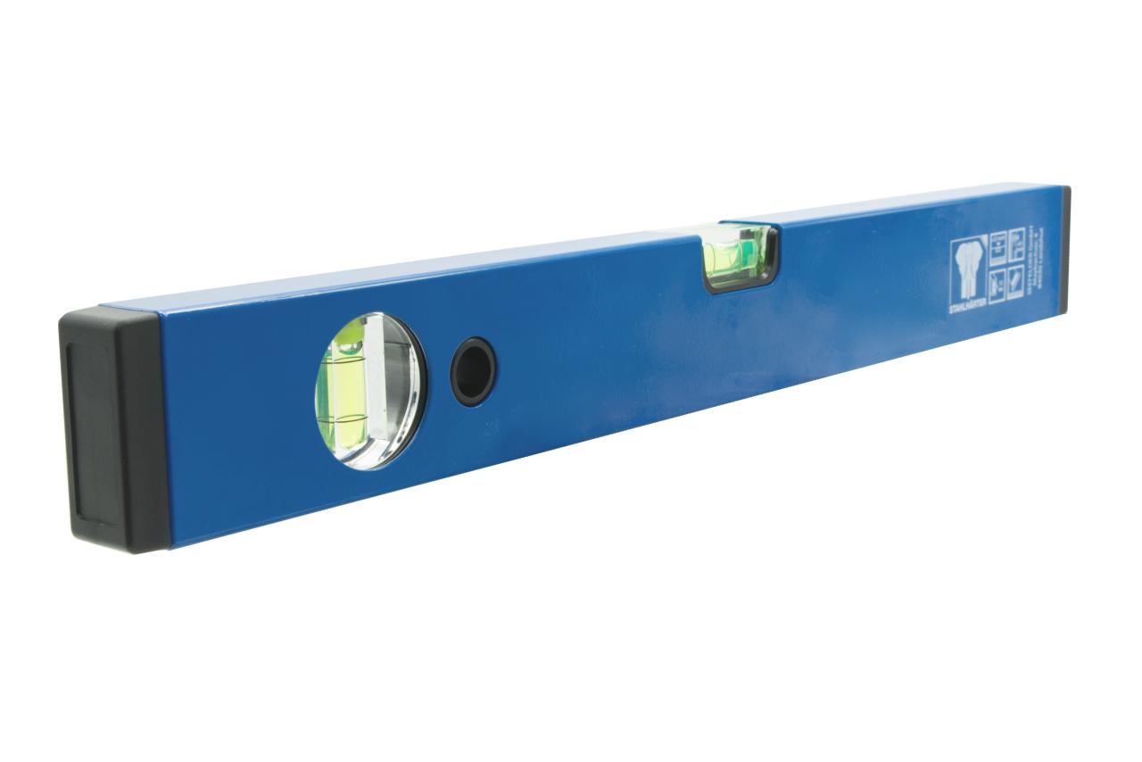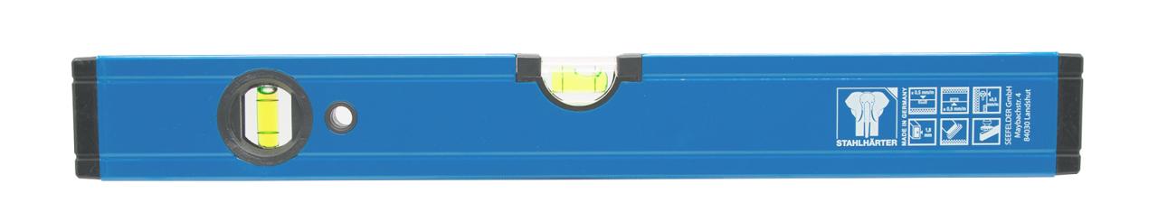 Robustní vodováha z nerozbitného speciálního plastu. Robustní, hladký hliníkový profil. Se dvěma vodováhami (jednou vodorovnou a jednou svislou).