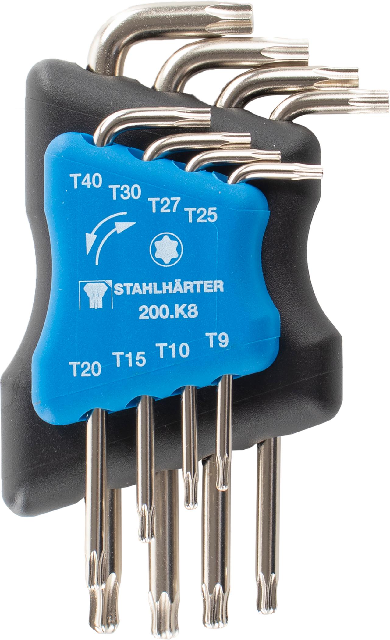 Rám sady klíčů na čepy lze otáčet, aby bylo možné klíče snadněji vyjmout. Sada je také zajištěna pro přepravu otočením o 90°.