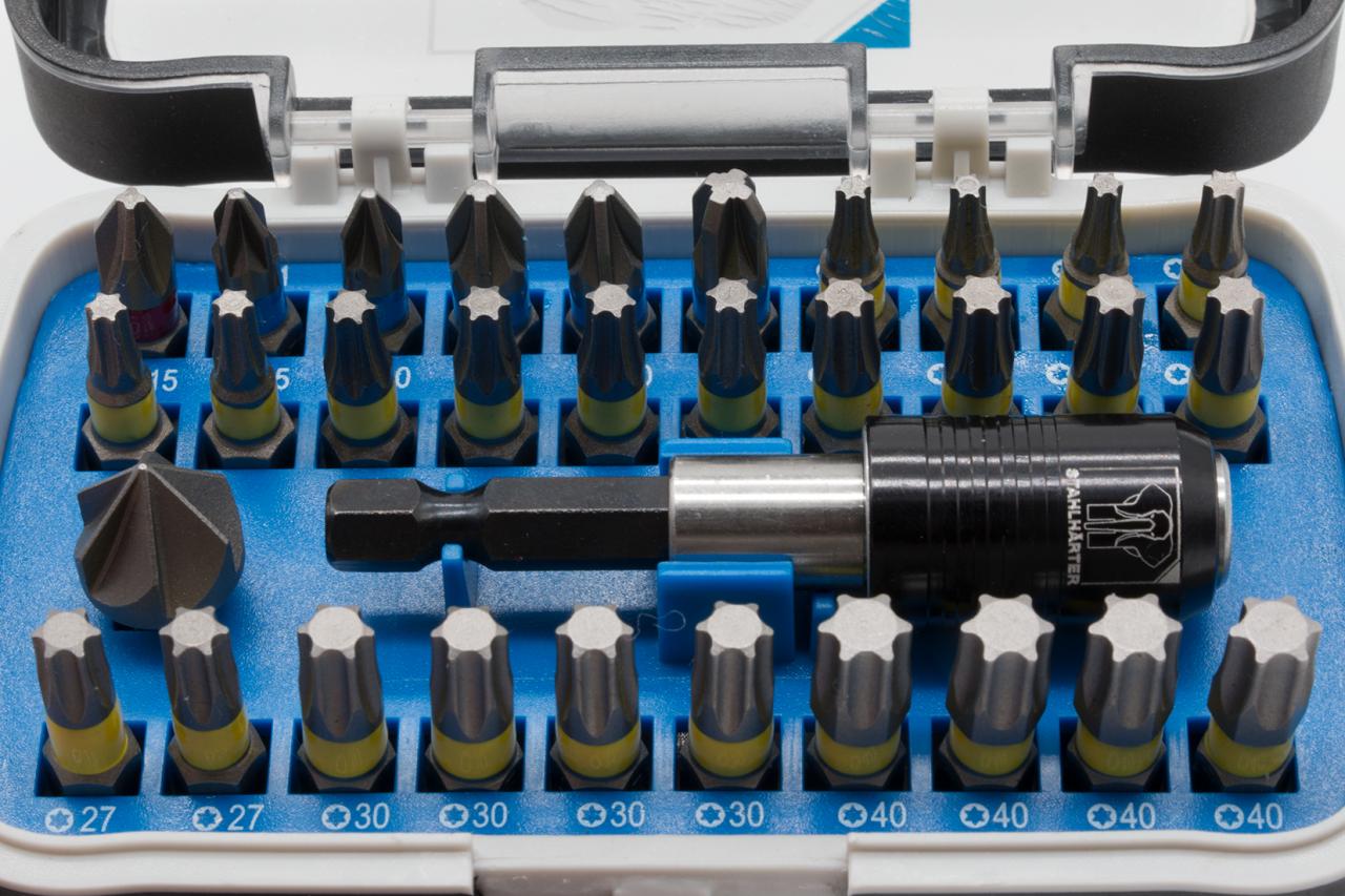 Sada bitů v praktickém boxu se specifickým sortimentem pro dřevozpracující obory. Bity s pohonem PH, PZ a TX, stejně jako záhlubníky a rychlovýměnné držáky bitů nenechají při každodenní práci nic náhodě.