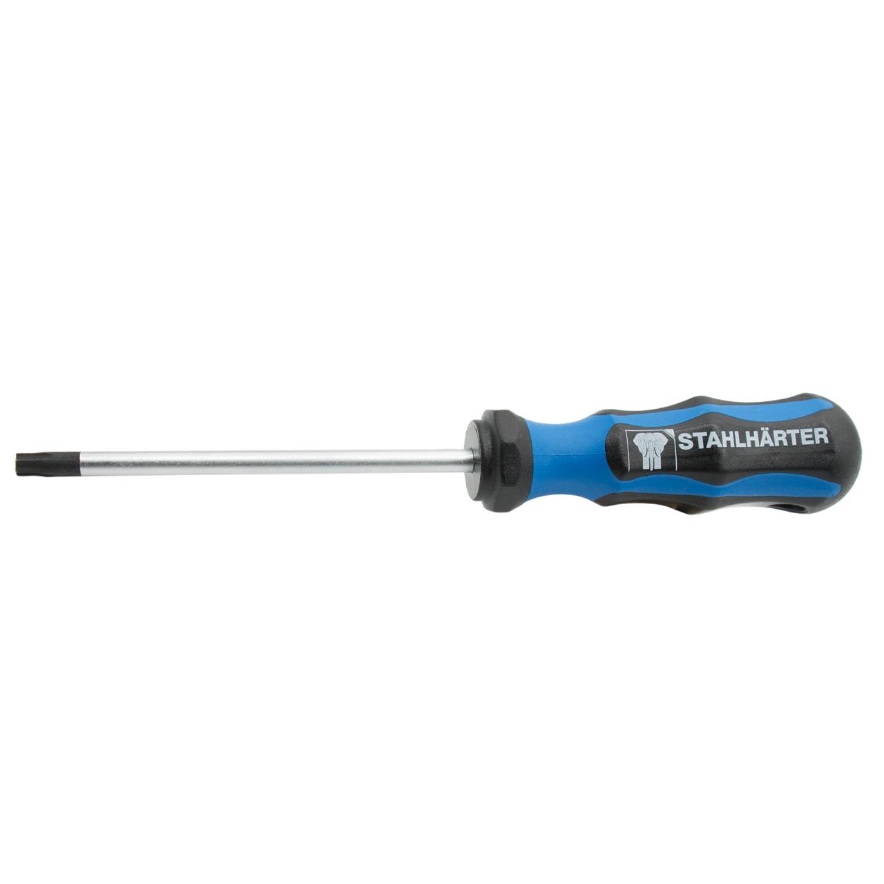 Šroubovák STAHLHÄRTER s pohonem Torx® patří do každé sady nářadí. Díky dvousložkové rukojeti perfektně padne do ruky. Kombinace měkkého a tvrdého plastu dodává rukojeti šroubováku přilnavost a zajišťuje bezpečné držení. Kulatá čepel ze speciální vysoce legované oceli je mimořádně odolná. Čepel šroubováku boduje také díky velmi vysoké tvrdosti a hodnotám kroutícího momentu.