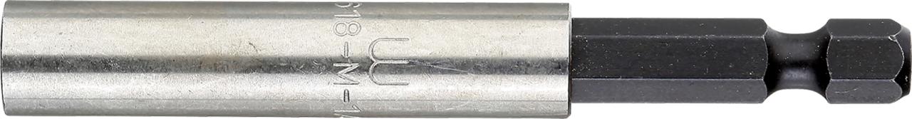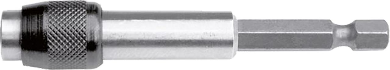 Univerzální držák bitů s nerezovým pouzdrem a pojistným kroužkem zajišťuje bezpečné uchycení bitů. Silný permanentní magnet zajišťuje dokonalé usazení bitu v držáku.