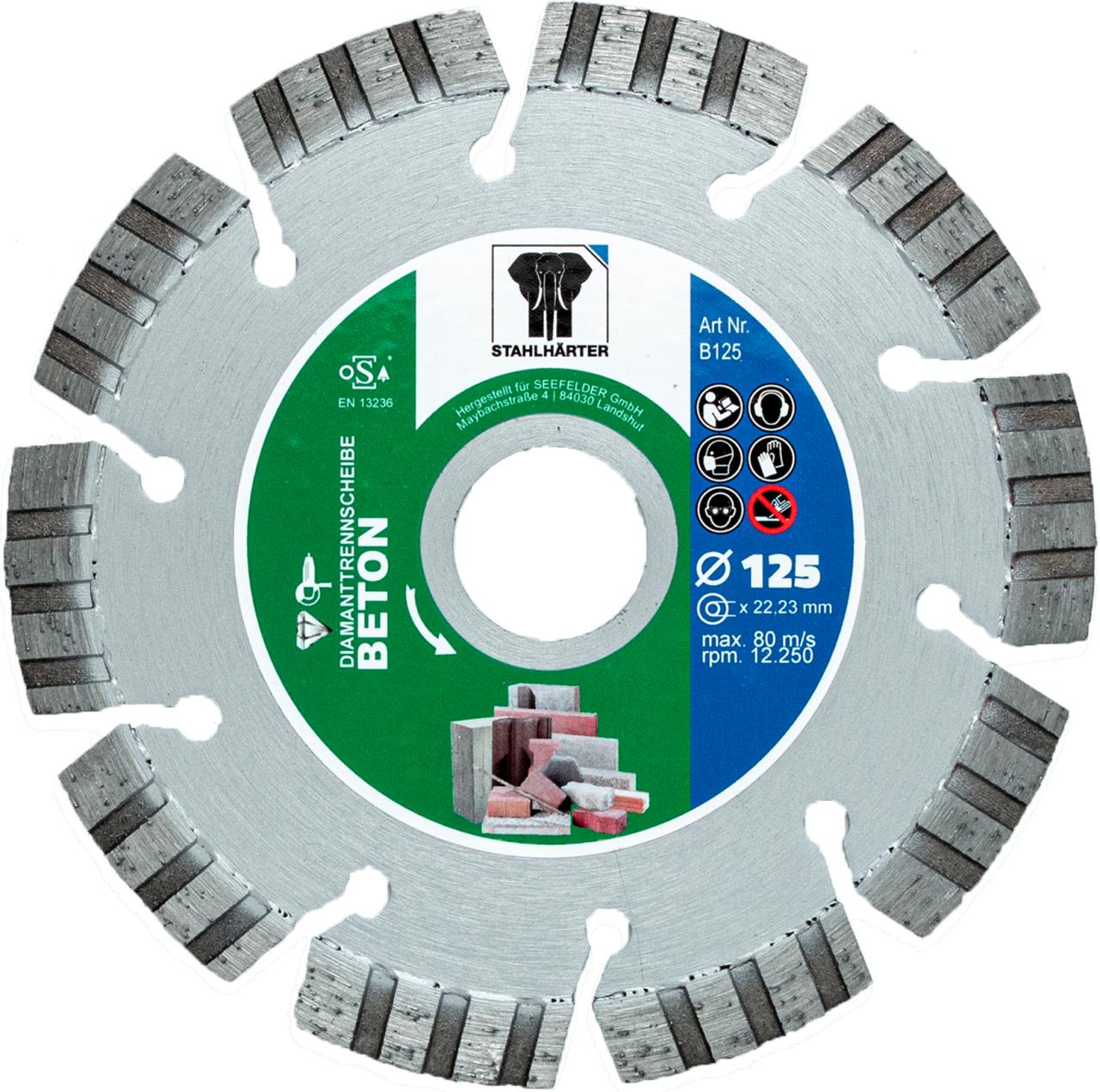 Agresivní diamantový řezací kotouč STAHLHÄRTER je správným nástrojem pro profesionály pro zpracování betonu a betonové zámkové dlažby. Díky zvláště vyváženému spojení segmentů lze řezací kotouč na beton použít také pro druhy betonu s armováním.